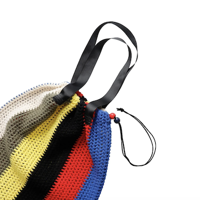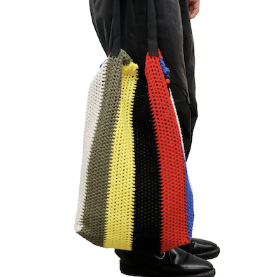 CROCHET (かぎ針編み) によって手作業で作られたバッグは耐久性もあり、持つだけでコーディネートのアクセントにもなる。